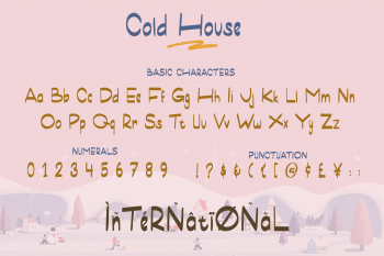 Cold House is a cute and colorful display font. Its friendly feel makes this font fitting a various and wide range of contexts. Add it to your design ideas and notice how it makes them stand out!